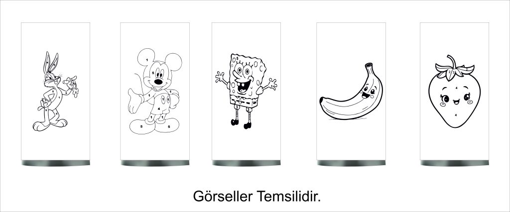 Çocuklarımızı unutmadık. Onların kişisel gelişimlerine destek olmak amacıyla çizgi karakterlerden esinlenerek “AI” maharetiyle numaralı görseller oluşturduk, ta ki abajur üzerindeki boyamaları kendi elleriyle yaparak, kendi abajurlarını tasarlayabilsinler.